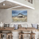 This is a stretched canvas print made from an original painting. It comes in various sizes, allowing it be either featured art in your living room or act as an accent for your bathroom, kitchen, or hallway.